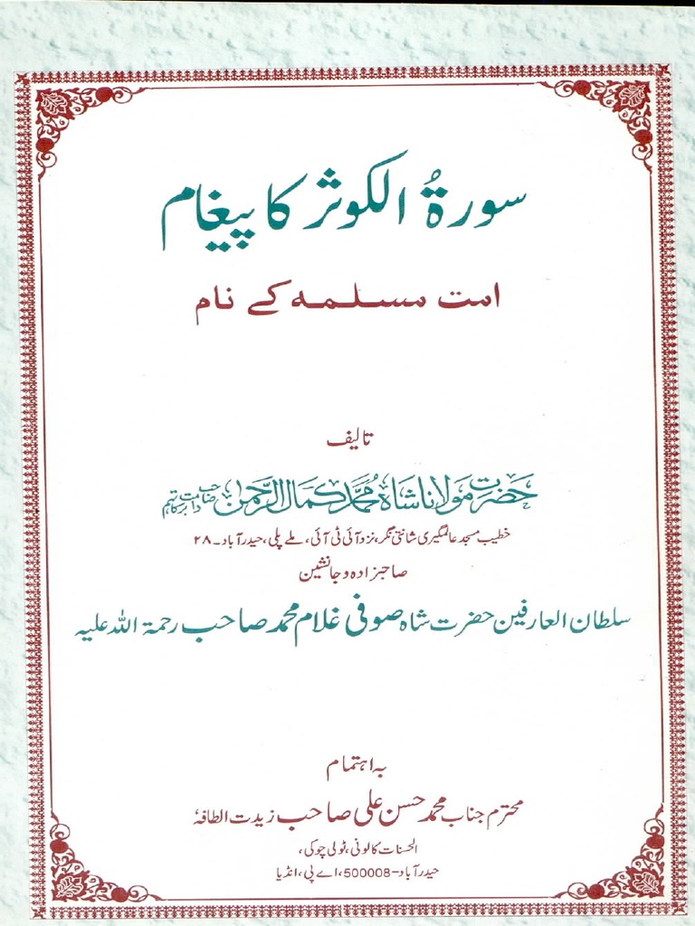 Lautan hikmah surah alkautsar lautan hikmah surah alkautsar merupakan buku yang berisikan seputar tafsir doa, wirid, asma' dan amalan dengan wasilah surah al kautsar insya allah akan terkabul hajat dunia dan akhirat, keselamatan, dimenangkan atas musuh, dll. Disaat rasulullah merasa sedih karena beliau ditinggalkan dua orang yang sangat dikasihi dan disayangi. Ia telah diturunkan di makkah dan bermaksud sungai di syurga. Surat al kautsar dahulu kala di turunkan ke rasulullah saw di mekah karena suatu alasan. Rasa air sungai ini lebih manis daripada madu.