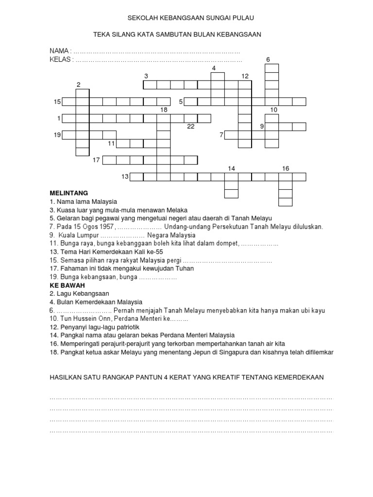 Teka silang kata, teki teki silang, permainan bahasa, uji minda, asah minda, abc. Crossword puzzle in malay language. Teka silang kata simple workshhet. Currently this app is for free.this app can be downloaded on android 2.3.4+ on. Teka silang kata, teki teki silang, permainan bahasa, uji minda, asah minda, abc.