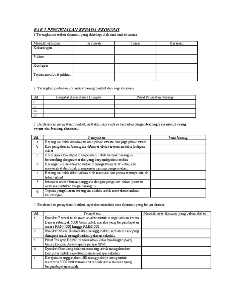 If you continue browsing the site, you agree to the use of cookies on this website. Latihan bab 1 pengenalan kepada ekonomi ekonomi asas tingkatan 5. Perbandingan antara ciri ciri sistem ekonomi nash notes. Soalan ekonomi asas tingkatan 4 bab 5 terengganu w. Upload pdf to create a flipbook like ekonomi tingkatan 4 now.