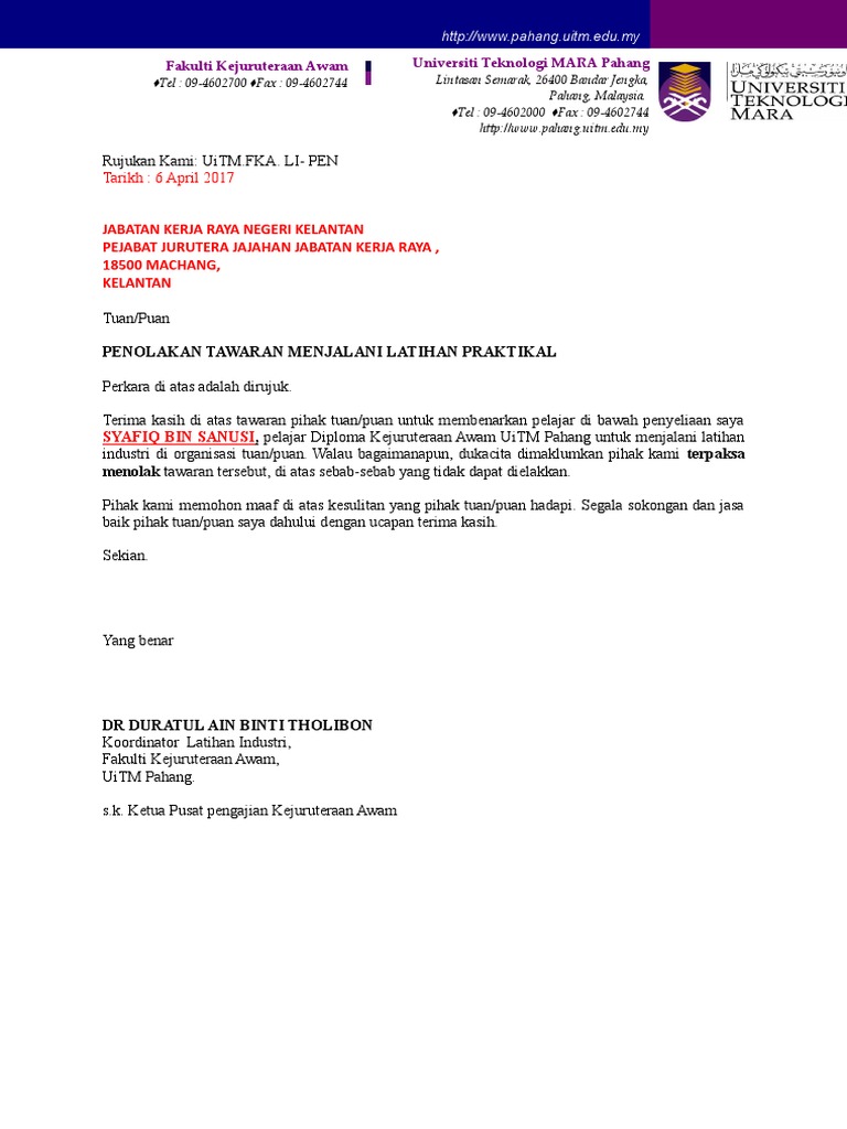 Surat Tolak Tawaran Kerja / Bila Dapat Offer Letter Apa Yang Perlu Disemak Hr Ini Bongkar Satu Persatu Semua Semua Semuanya - Mungkin sebagian besar dari kita pernah mengalami kondisi pada saat melamar pekerjaan pertama kalinya sebagai freshgraduate, kita mendapatkan tawaran pekerjaan secara bersamaan dari dua perusahaan yang pernah kita lamar sebelumnya.. 89%(19)89% menganggap dokumen ini bermanfaat (19 suara). Komed uitm melaka on twitter: Dunia kerja adalah dunia yang saling berkaitan satu sama lain. Surat lamaran kerja harus dipersiapkan bagi kamu yang sudah siap masuk ke dunia kerja. Buat surat penolakan yang sopan dengan singkat dan langsung pada pokok permasalahannya.
